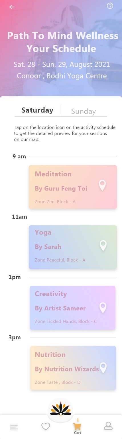 Commitment: One-tap RSVP to nearby, short-duration yoga events