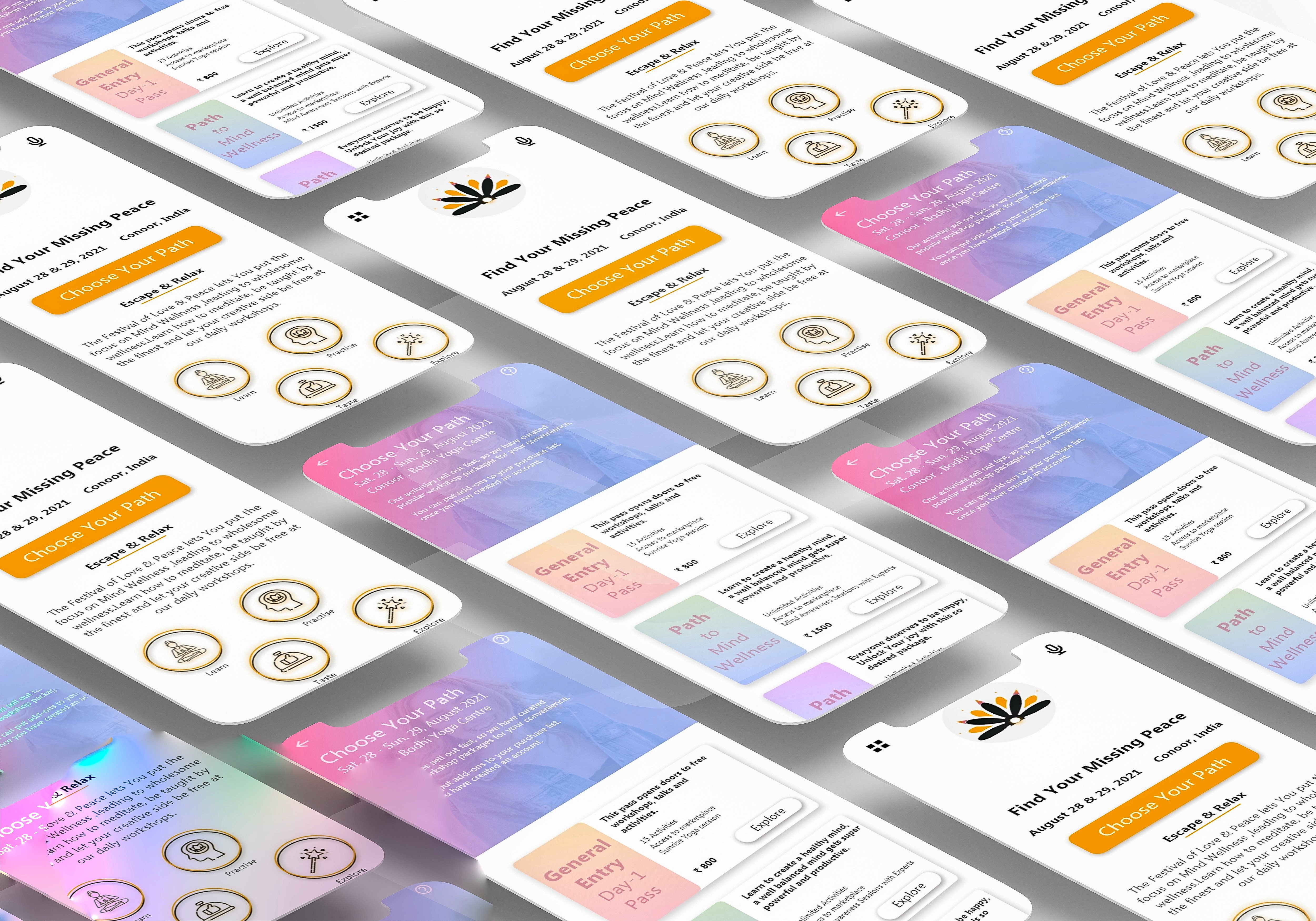 Design an events App for mind wellness yoga and incorporate personalized features that would value and improve the customer’s experience. Make it a community driven platform.